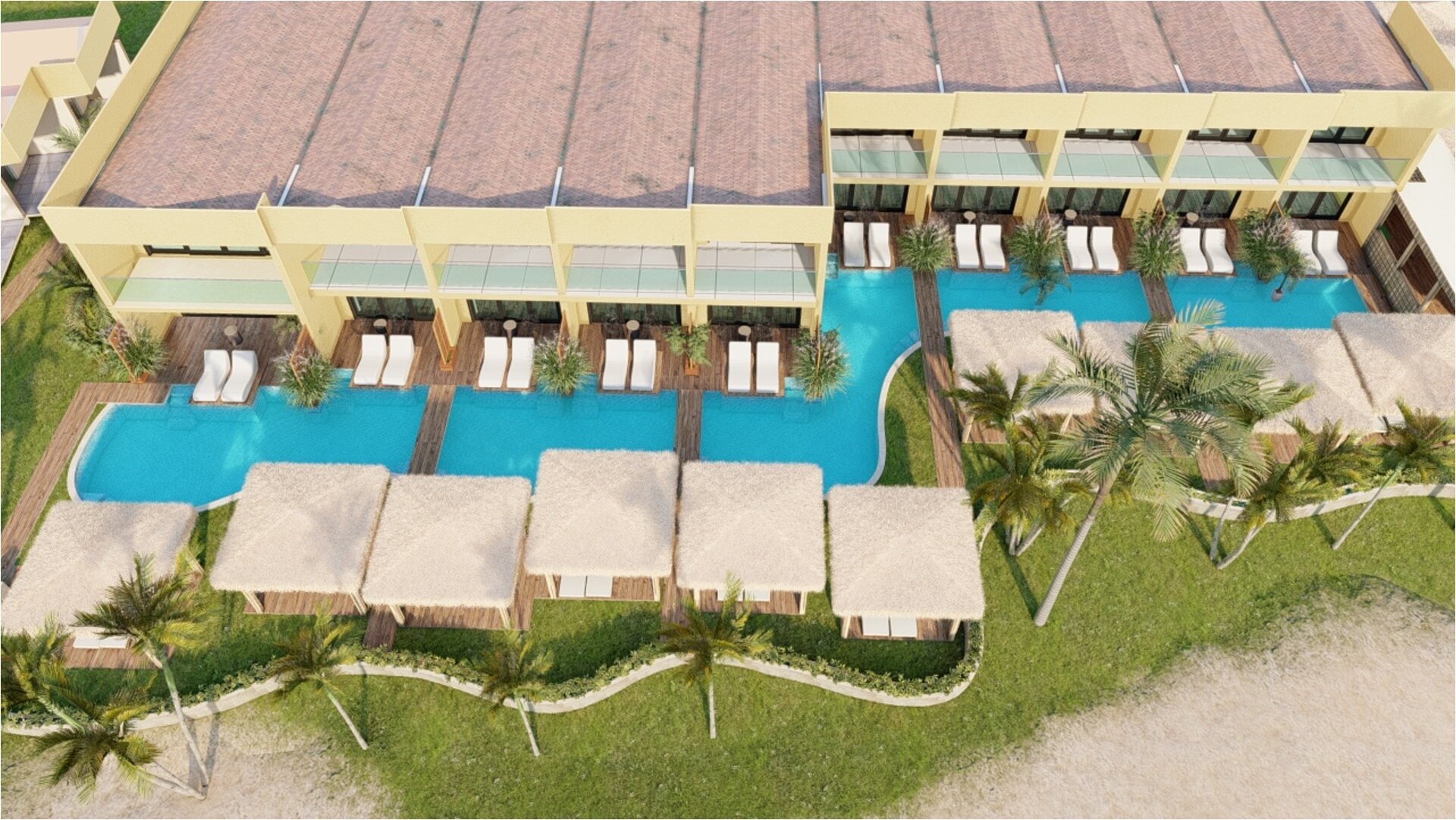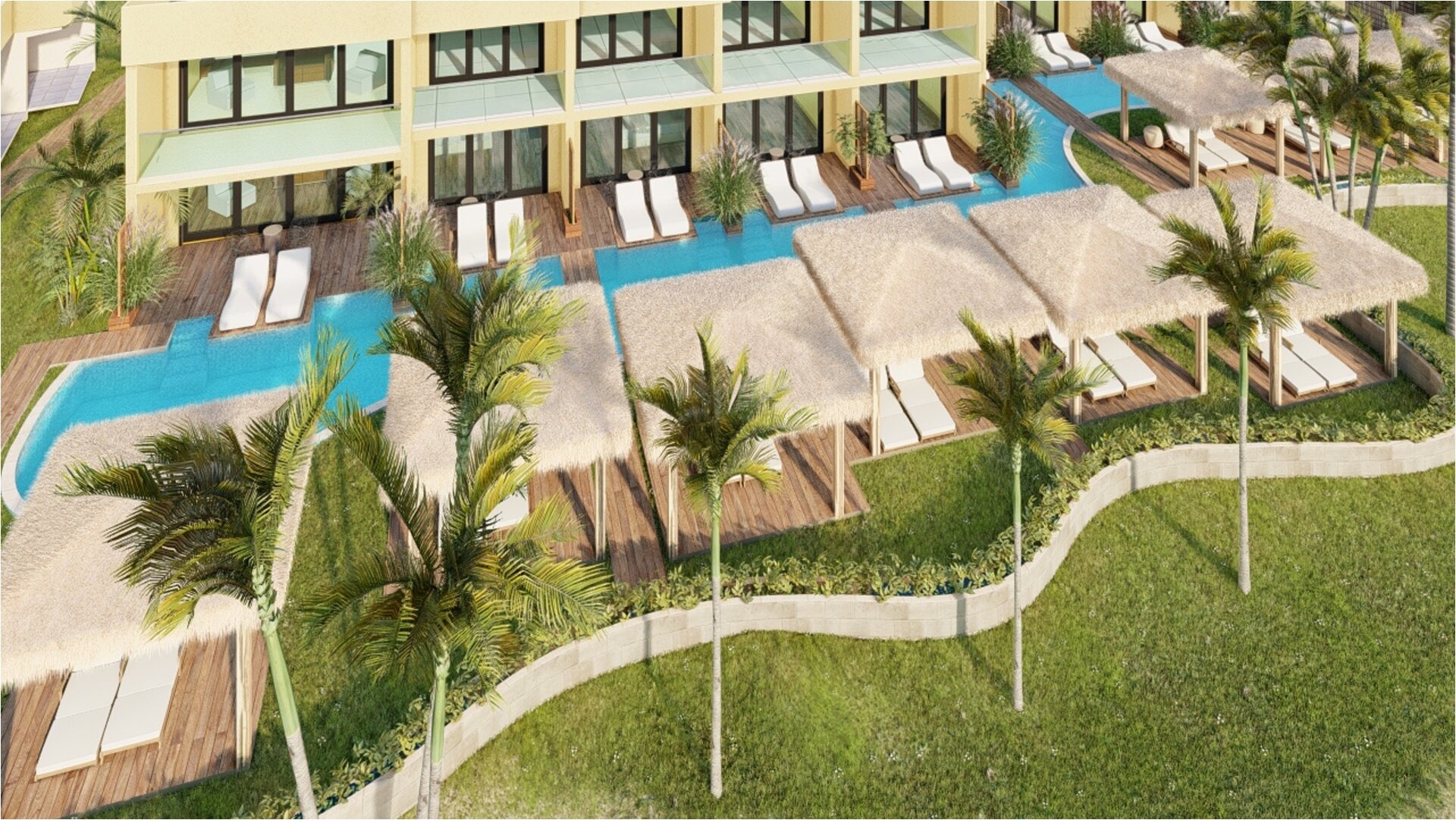 a pool and palm trees by a resort Image Slide6, Link to Larger Image - a pool and palm trees by a resort